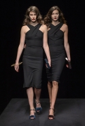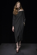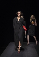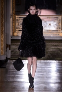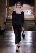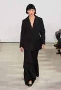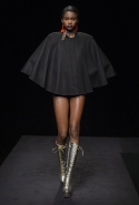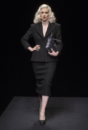Времена, когда Шарлотт Деллал занималась исключительно аксессуарами, прошли. Но одежда по-прежнему кажется только фоном для сумок и обуви, причем фоном намеренно нейтральным и почти незаметным — черным в темном зале. Обычно так все-таки не бывает: команда Charlotte Olympia показывала и pin-up girls, и морячек, — и всех их, ярких и полосатых, вряд ли можно было назвать неприметными. А теперь дизайнеры марки за героинь нуаров и вообще девушек 40-х. Все это можно разглядеть в черных платьях, костюмах и вуалях, сделанных для показа Пьером Аткинсом. А вот в самой интересной части, то есть в части аксессуаров, на первый план выходят научно-фантастические ретрофильмы, их постеры и обложки комиксов.