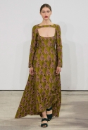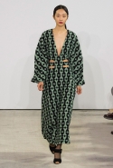 Эмилия Викстед определенно относится к числу тех дизайнеров, на коллекции которых никакого влияния не оказывают ни общепризнанные тенденции, ни актуальная повестка дня, ни лайки в соцсетях. Что бы ни происходило в мире, можно быть уверенными: на подиуме у британки будут все те же длинные платья мягких силуэтов, округлые плечи и рукава, юбки в пол и высокие воротники до самого подбородка. Такая верность себе производит впечатление в некотором роде умиротворяющее. Тем более из-за крайней плавности всех линий в платьях этих чувствуется что-то от домашней одежды аристократок прошлого (которая по нашим сегодняшним меркам была тоже самой что ни на есть парадной) — или даже восточных халатов с их объемными рукавами и мягкими складками. Хотя ни запаха, ни поясов, ни столь выраженного и неизбежного акцента на талии они не имеют.