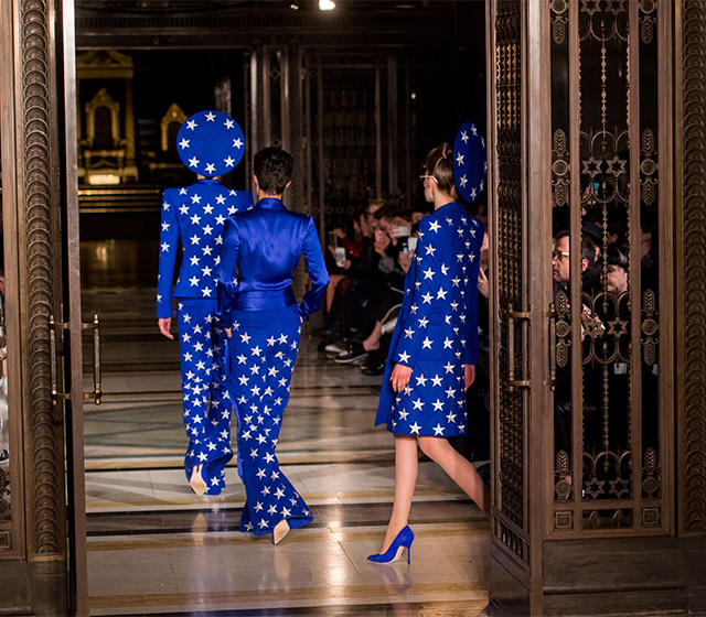 Символом этого подъема в версии Пью, как и в 80-х, становится power suit — с широкими жесткими плечами, со строгой юбкой-карандашом и в самых броских, обращающих на себя внимание цветах. Например, в бьющем в глаза электрическом синем, сверху усыпанном еще и блестящими звездами. В качестве альтернативы юбкам могут выступать и широкие брюки, пришедшие на подиум из тех же 80-х, а синий вполне может быть заменен более привычными и офисными костюмными цветами: серым, черным, коричневым. Никуда не исчезает при замене слагаемых только ощущение собственной силы, живущее во всех этих костюмах. И даже маскам в традициях Ганнибала Лектера не удержать женщину, осознавшую, что она может наконец добиться всего, чего захочет.