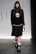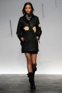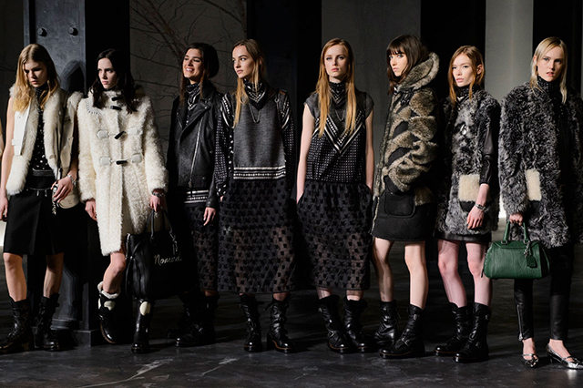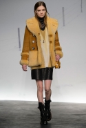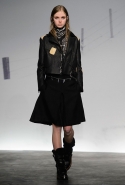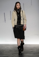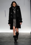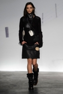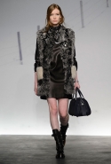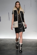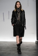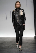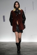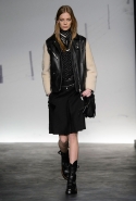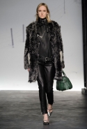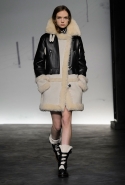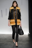 Благодаря Марлону Брандо, Джеймсу Дину и их воплощенным на экране героям мы отлично запомнили, что главный атрибут образа любого бунтаря — кожаная куртка. Их, кажется, торжественно и автоматически выдают каждому, кто решил шагнуть на «плохую» дорожку. Поэтому кожаные куртки и вообще изделия из кожи играют в новой коллекции Coach одну из ключевых ролей. Под косухи маскируются даже объемные дубленки с меховой оторочкой наружу, которые остаются главным типом верхней одежды в ассортименте марки на протяжении двух осенне-зимних сезонов. Байкерскую тематику неожиданно продолжает и мотив американского флага, периодически мелькающий на вещах в рокерской черно-серой расцветке.