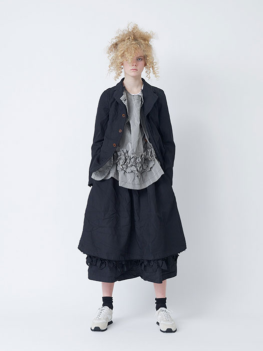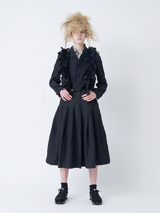 Если мы уже привыкли, что вещи Comme des Garçons отличаются нестандартным кроем и авангардными пропорциями, то в линейке Comme des Garçons Comme des Garçons (именно так, дважды) все немного спокойнее. В коллекции весна-лето 2017 крой привычных базовых вещей меняется, но не с ног на голову — все это можно носить в повседневной жизни, не сильно эпатируя окружающих.