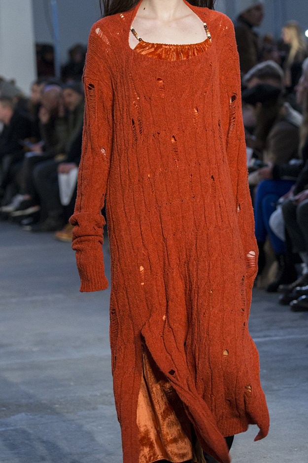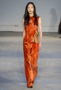 Рваные свитера, этнические акценты, потертые кожаные костюмы — гардероб скитающегося странника и его спутницы в новой коллекции Damir Doma. Кредо дизайнера — цитата из Talking Heads: «Ничего ради денег, все только ради любви». Впрочем, без денег здесь не обошлось: мастер использовал самые дорогие материалы для создания образов своих скитальцев — шелк и бархат, сатин и кожа. Коллекция получилась абсолютно андрогинной — различия между мужской и женской модой в Damir Doma не котируют, и девушки, переодетые в бедуинские наряды, бредут по бесконечной пустыне наравне с юношами.
