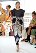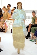 Похоже, что американские дизайнеры в новом сезоне увлеклись Испанией: как минимум два бренда уже представили собственные «испанские» коллекции — мы говорим о Proenza Schouler и Oscar de la Renta. Хосеп Фонт тоже искал вдохновение в культуре этой горячей страны. Но поскольку Фонт родился там и жил, с испанской культурой он знаком не понаслышке. И его ассоциации с ней вовсе не исчерпываются обилием оборок, матадорами, танцовщицами фламенко и огненно-красным цветом, как это происходит обычно (и как произошло у Коппинга и Эрнандеса с МакКалоу). Фонт, как всегда, отталкивается от самых неочевидных вещей: на этот раз, по его словам, главными героями коллекции стали Эмилия Флоге, муза Густава Климта, и Федерико Гарсиа Лорка с его «Цыганскими балладами». Но даже зная об этом, отсылки найти в самой коллекцией по-прежнему сложно, как в принципе и проследить за полетом фантазии самого Хосепа Фонта.