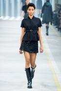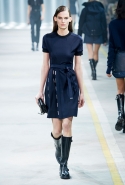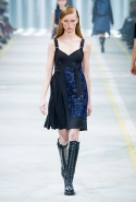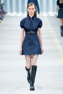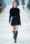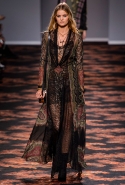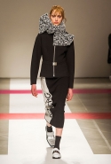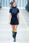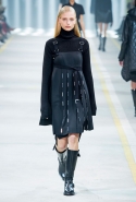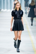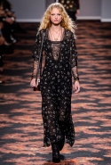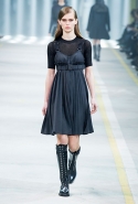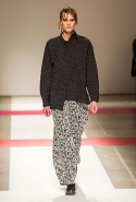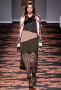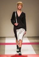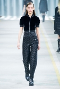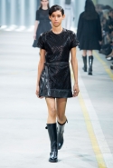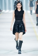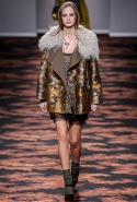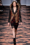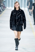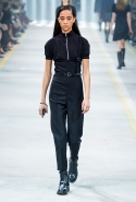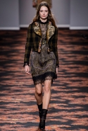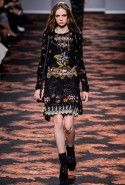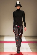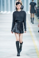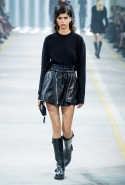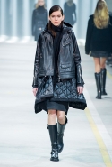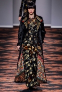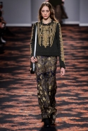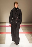 В своих коллекциях для Diesel Black Gold креативный директор марки Андреас Мельбостад остается верным привычному стилю: немного рок-н-ролльному, обязательно монохромному или черно-белому, без выраженных ярких акцентов, но с металлическими и блестящими деталями. И главное, сами вещи должны быть максимально простыми и привычными по силуэту: от мини-юбок А-силуэта до бомберов. Зато в этих рамках может уже проявляться и разнообразие — в основном благодаря отделке и сочетаниям фактур. Эта коллекция, на вид совершенно байкерская, например, отшита по большей части из бархата и — так, конечно, просто кажется — пайеток. Кожа здесь играет не такую значительную роль и, как ни странно, вообще почти не появляется. Зато появляются стеганые мини-юбки с абстрактными узорами, сияющие диско-куртки, по крою похожие на мотоциклетные, и жаккардовые расписные брюки.