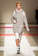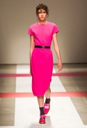 Сам себя он называет дизайнером-рассказчиком: во всем, что он делает, обязательно должно быть что-то очень личное. Но работе Iceberg в новом сезоне Артур Арбессер, кажется, не стал отдавать себя без остатка — по крайней мере, история ее происхождения звучит более отстраненно, чем то, что австриец обычно рассказывает о коллекциях для собственной марки. Хотя, опять же, мы можем и чего-то не знать: лучше всех обо всем мог бы рассказать только сам Арбессер. Но в ущерб красоте и качеству одежды эта условная отстраненность нисколько не пошла. На этот раз вдохновение дизайнер нашел в работах Superstudio, итальянского дизайнерского бюро 60-х годов. У них Арбессер позаимствовал идею с яркими красочными квадратами, рассыпав их по множеству вещей. Они поселились и на трикотажных платьях, жилетах и кардиганах (трикотаж — исторически главная специализация марки, которую он уже второй сезон возглавляет), и на рубашках, и на целых костюмах. Но лучше и ярче всех получились вещи, сплетенные из розовых, красных и белых полос-прямоугольников.