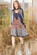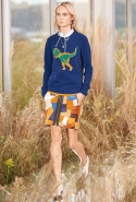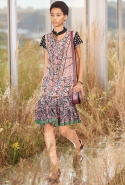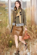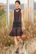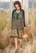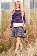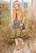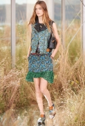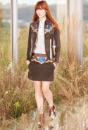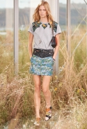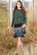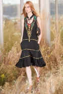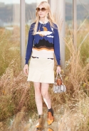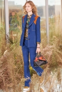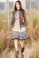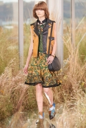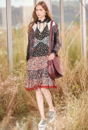 На этот раз, кажется, дизайнер решил вспомнить о девушках из пригородов — тех самых, которые в школу идут через бескрайние поля, а на досуге любят красиво лежать в траве, красиво раскинув усыпанные цветами юбки. Они носят большие куртки с ситцевыми платьицами в цветочек, непритязательные костюмы и юбки с простыми свитерками. А на свитерах — вполне возможно, с любовью связанных их мамами и бабушками - часто красуются детально вывязанные картинки со страниц журналов по рукоделию, которые привозит к ним домой сельский почтальон.
