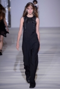 По словам Андреаса Мельбостада, дизайнера Diesel Black Gold, его героиней в новом сезоне стала девушка, которая с удовольствием носит вещи из гардероба своего бойфренда: «Берет белую рубашку, надевает ее как платье и накидывает на плечи классный жакет». О настоящей гендерной амбивалентности по отношению к этой коллекции говорить не имеет смысла: несколько пар широких «дедовских» брюк, несколько рубашек (не всегда белых) и жилетов еще не делают ее бесполой. Так что вряд ли этот ход Мельбостада стоит пытаться хоть как-то связать с общей тенденцией — но это совсем не значит, что коллекция плоха или недостаточно хороша. Наоборот, обыграть вещи из традиционно мужского гардероба, превратив их в женские, у дизайнера получилось без видимой напряженности. И абсолютно все — от латексных брюк до кожаных комбинезонов — выглядит носимым. Даже несмотря на эксперименты команды Diesel Black Gold c текстурами и новыми техниками.