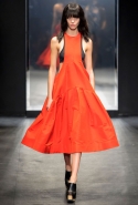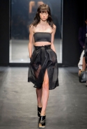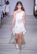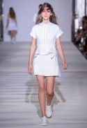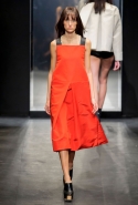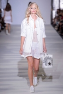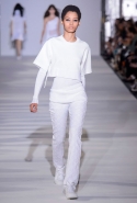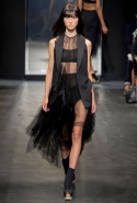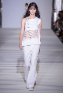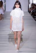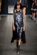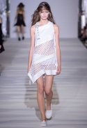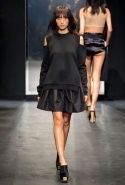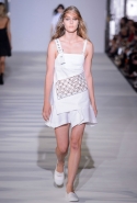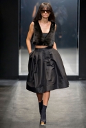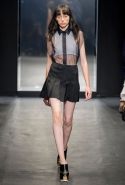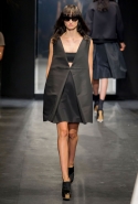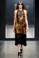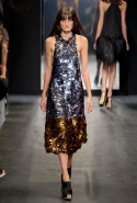 И снова школьницы — на этот раз в самой непривычной интерпретации. Если Том Браун и Шейн Оливер взялись перешить на свой лад традиционную школьную форму, то Вера Вонг просто решила соединить в одной коллекции самые разные вещи, которые ей нравятся, и главными ее темами оказались Лас-Вегас, школьницы и «Дневная красавица» с Катрин Денев — то есть тема двойственности и вообще двойной жизни, которую ведет один и тот же человек. Поэтому скромные закрытые платья соседствуют здесь с экстра-мини или прозрачной органзой, а школьные плиссировки — со спортивными бра. И, конечно, за Вегас отвечает череда блестящих платьев, расшитых золотистыми и серебристыми пайетками.