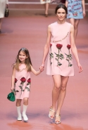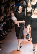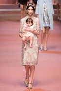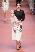 Каждый из людей, живших когда-либо и живущих на планете сейчас, обязан появлением на свет женщине, которая выносила его под своим сердцем, — матери. Мам принято любить и уважать в каждой стране и в каждой культуре, но мало где культ матери так же силен, как в солнечной Италии, родной стране Доменико Дольче и Стефано Габбаны. Предыдущую свою коллекцию, представленную на неделе мужской моды, дизайнеры посвятили семье, взяв за основу принтов старинные семейные фотографии, а на этот раз, на показе женской, решили конкретизировать. И признались в любви матерям — не только своим собственным, но и каждой маме на свете: Viva la Mamma! На подиум в это воскресенье вместе с профессиональными моделями вышли и их дети: какие-то из малышек топали, держась за мамину руку, каких-то, слишком маленьких для такого ответственного появления на публике, но уже одетых в нарядные кружевные платья, девушки несли на руках. А Бьянка Балти, одна из главных любимиц Дольче и Габбаны, и вовсе вышла на подиум с внушительным животом: в семье музы дизайнеров ожидается пополнение.