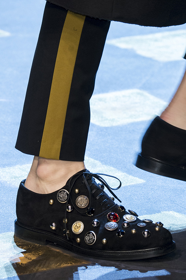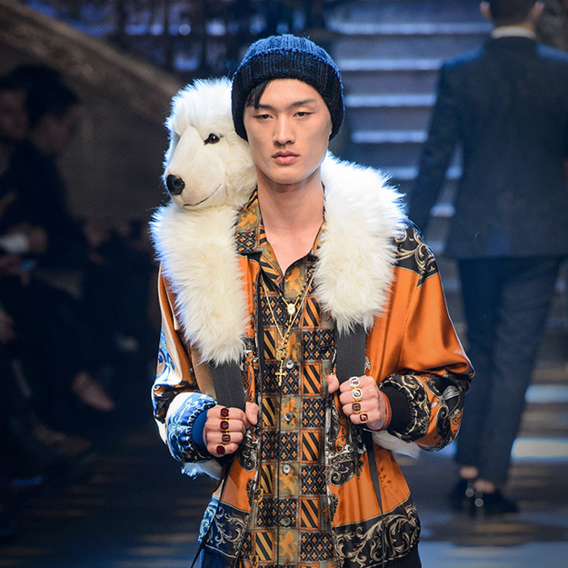 Показ прошел под девизом хэштегов #DGMillennials и #DGPrinces, и немудрено: получив известность на YouTube и в Instagram, миллениалы добрались до подиума Dolce & Gabbana. Среди них были дочери Сильвестра – Систин и София, Лаки Блю Смит и его сестры – Пайпер Америка, Старли Шайенн и Дейзи Клементайн (одни имена чего стоят), бойфренды и герлфренды актеров и актрис, немецкие фэшн-блогеры, ведущие инстраграмов с мемами и прочие люди, о которых вы никогда не слышали. Яркие принты, аристократичная фактурность и множество деталей — классическая стилистика итальянской марки.