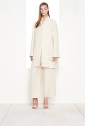 При этом, по словам самой Каран, в Китае, которому и посвящена коллекция, она до сих пор ни разу не побывала — собиралась в этом году, но поездка отменилась. Эта коллекция, как считает американский дизайнер, стала для ее марки началом нового этапа. Поэтому в ней и царит полный минимализм: Донна Каран использует только ограниченный набор максимально простых цветов (белый, несколько оттенков кремового, черный и приятный глазу розовый) и отказывается от любых «украшательств». А за основу берет семь простых вещей — от рабочей куртки и кюлотов до осовремененной версии кимоно.