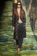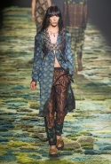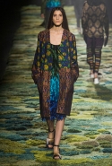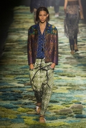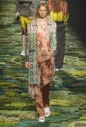 Природа в творчестве художников-прерафаэлитов занимала особенное место и статус имела практически священный. Они не только старались изображать ее максимально подробно и достоверно на своих полотнах, но и призывали учиться у нее, "обратиться к природе всем сердцем и идти рука об руку", как писал Джон Рескин. Эта сторона философии Братства прерафаэлитов и увлекла на этот раз бельгийского дизайнера Дриса ван Нотена. Он тоже воспевает красоту природы и запечатлевает окружающее в своих вещах, покрывая их принтами с размытыми, словно написанными маслом цветочными узорами. На бесконечную огромную картину похож даже подиум — его дизайнер покрыл пестрым травяным ковром, составленным, как мозаика, из кусочков разного цвета. Если подойти к любой картине слишком близко, так же будет выглядеть и она — скопление сочных, насыщенных мазков, которые обретают смысл лишь на расстоянии.