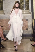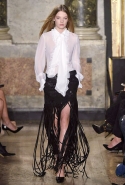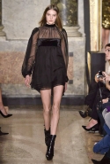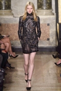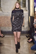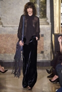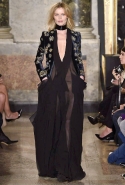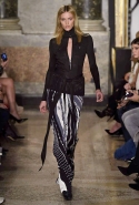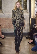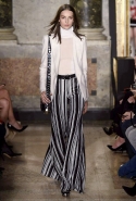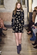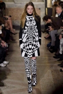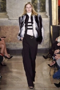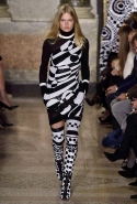 Но даже если не искать в россыпях звезд и зодиакальных символах на платьях никаких скрытых смыслов, коллекция выглядит очень эффектно. Знаки, хорошо известные каждому, кто хоть раз, покупая журнал, в первую очередь искал страницу с гороскопом, Дундас идеально переводит на язык Emilio Pucci. В черно-белых дробленых картинках, похожих на гравюры из старинной книги мистического содержания и вывязанных на платьях-свитерах, поначалу трудно узнать Овнов и Скорпионов, Стрельцов и Львов. Но стоит один раз найти свой собственный знак Зодиака, как шифр тут же поддается, и все остальное разгадывается уже с первого взгляда. Невероятно хороши и бархатные платьица, расшитые золотыми звездами, сияющими солнцами и атрибутами все тех же зодиакальных символов, и вечерние платья в пол, и короткие шортики с воздушными блузами, и развевающиеся на ходу широкие брюки, в складках которых прячутся какие-то латинские обозначения.