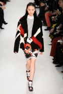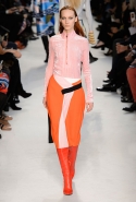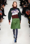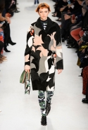 Тему гор в моде и их художественных изображений в принтах и аппликациях, казалось бы, уже максимально раскрыл Прабал Гурунг — не лыжник, но уроженец Непала. Однако Массимо Джорджетти, которого лично с ними ничто, кажется, не связывает, это удалось ничуть не хуже. Горные вершины и склоны он нарисовал на вещах, соединив с классическими мозаичными принтами Pucci, и результат оказался таким ярким и сильным, что часть вещей хочется даже не носить, а повесить на стены, как картины. Каким-то удивительным образом рваные полоски и цветные блоки складываются в чудесные красочные полотна. И, перенесенные на вещи, они выглядят еще более эффектно. Возьмем, например, пуховик, разделенный на две части, черную и морковную, как раз лилово-розовой горной грядой, — и вспомним пестрые и аляповатые пуховики Pucci, в основном поддельные, которые несколько лет назад заполнили улицы Москвы. Уже одно это сравнение максимально убедительно доказывает, что сотрудничество с Джорджетти итальянскому дому идет только на пользу и дизайнер оказался лучшим выбором для марки.