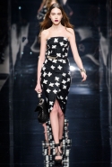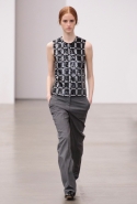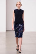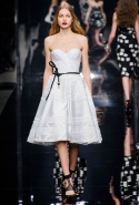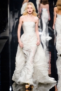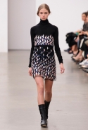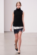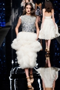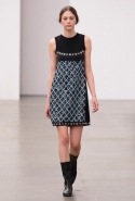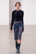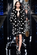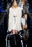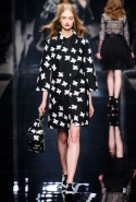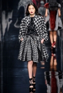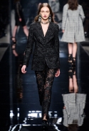 Черно-белый узор «гусиная лапка», по-настоящему электрический синий и красавица Джессика Стэм с винными губами и в белом платье — вот чем в первую очередь запомнился нам показ Ermanno Scervino. Необычайно богата и отделка, что особенно сильно бросается в глаза в сочетании с простой клеткой: невозможно не залюбоваться пышными цветами, распускающимися на юбках и пальто, и не засмотреться на сияющий плотным слоем пайеток лиф очередного идеально сидящего по фигуре платья.