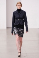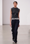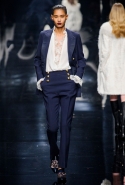 Свою блестящую осеннюю коллекцию Антонио Маррас посвятил Бенедетте Барзини, невероятной итальянской красавице и одной из самых ярких моделей 60-х годов прошлого века. В своих заметках, посвященных шоу, дизайнер называет свою музу и «королевой», и «бойцом», и его восхищение ее противоречивым и сильным характером читается и в представленной сегодня на подиуме одежде. Глухие и темные вещи мужских силуэтов встречаются здесь с сияющими серебром пайетками, благородный и сдержанный синий цвет — с полупрозрачными невесомыми юбками, а жакеты и пальто в едва заметную полоску, похожие на мужские пиджаки, — с блестящими мини-юбками, явно напоминающими о свободолюбивых 60-х.