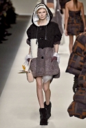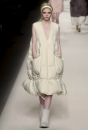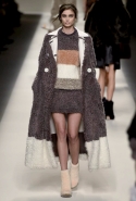 То, что делает для Fendi Карл Лагерфельд, неизменно вызывает исключительно самые приятные эмоции. Если его коллекции для Chanel бывают очень удачными и совсем неудачными, то показы для итальянского модного дома стабильно радуют. С двумя главными «коньками» Fendi, а именно с геометрией и работой с мехами, маэстро управляется совершенно виртуозно. Не стала исключением и новая осенне-зимняя коллекция, в которой мягкие объемы дутых стеганых пуховиков (пожалуйста: готовый объект желания!) встречаются с резкостью идеально прямых и жестких линий, а мотивы из абстрактных работ Софи Тойбер-Арп, умершей в 40-х годах, неожиданно появляются на платьях и пальто А-силуэтов, пожаловавших на подиум прямиком из 60-х. Именно творчество швейцарской художницы вдохновило дизайнера на создание меховых пэчворк-мозаик, превратившихся в шубы, и геометричных принтов, украшающих цветную часть коллекции.