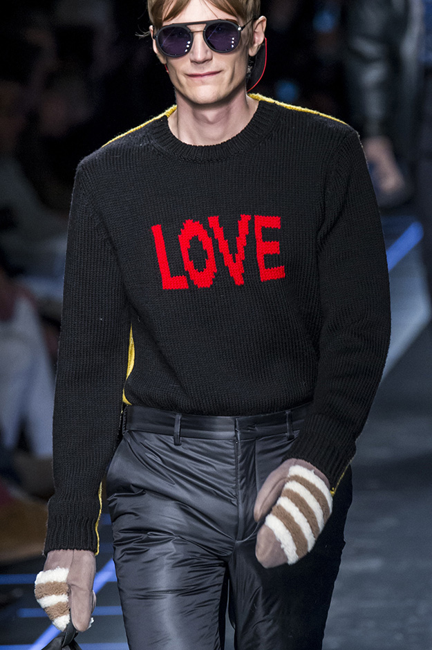 Сильвия Вентурини Фенди устроила своим суровым и четким поклонникам большой сюрприз, представив один из самых теплых показов на этой неделе — как в прямом, так и в переносном, эмоциональном смысле. Слоганы вроде «Доверьтесь Fendi», «Думайте» и «Старайтесь» ярко сияли со спортивных повязок и браслетов, а обилие леопардовых принтов напоминали о молодежных движениях 80-х. По словам дизайнера, цена вещей из коллекции оправдана тем, что многие модели можно носить вывернутыми наизнанку: прагматичность и социальная сознательность в этом году будут в моде.
