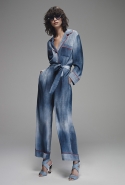 Несмотря на графичность большинства элементов, а также кожи и цвета хаки, коллекция в целом не кажется ни слишком резкой, ни воинственной. Обилие углов и мозаик из контрастных цветных блоков дизайнеры марки уравновешивают в джинсовой части. Вместо того чтобы делать из денима графичные комбинезоны, Карл Лагерфельд предлагает покупательницам костюмы пижамного кроя из тонкого и легкого, местами выбеленного денима и платья-халаты.