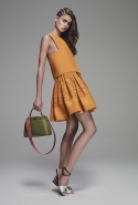 Новая круизная коллекция Fendi объединила все лучшее, что мы видели на двух последних сезонных показах: деним и цветочные заросли из весны-лета 2015 и строгую геометрию изделий из кожи, которой запомнилась осень-зима. Вместо орхидей Карл Лагерфельд на этот раз расписывает платья неведомыми тропическими цветами, похожими не на живые растения и даже не на иллюстрации из учебника по ботанике, а на чертежи. Бутоны и венчики складываются из геометрических фигур, а резные узоры из кожи создаются по принципу аппликации: острые лепестки просто накладываются на платья, пальто и куртки.