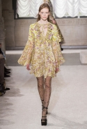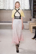 Девичья нежность с намеком на присутствие в жизни своей юной хозяйки и темной стороны — такое впечатление возникает от новой коллекции Джамбаттисты Валли для его второй, молодежной марки Giamba. Главными доказательствами наличия этой тайной жизни становятся узорчатые колготки в сеточку — предмет, обладающий весьма двусмысленной репутацией, к тому же с рисунком из кружков, похожих на прожженные сигаретой дырки; и кожаные пояса, крест на крест пересекающие грудь. Эти «перевязи» дизайнер надевает на девушек поверх самых милых и воздушных платьиц, разрисованных мелкими цветочками и расшитых объемными весенними цветами, тем самым еще больше подчеркивая интригующее противоречие. Сам же Валли описывает свою коллекцию как «встречу парижского Левого Берега и Восточного Берлина» — что, пожалуй, многое объясняет.