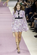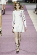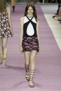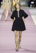 Хотя с недавних пор у Джамбаттисты Валли появилась и вторая линия, Giamba, как раз и отделенная от основной ради таких вот вещей «попроще», дизайнер продолжает развивать в том же ключе и старшую марку. Роскошным платьям с шитьем и перьями пора окончательно обосноваться исключительно в кутюрных коллекциях: в ready-to-wear Валли предлагает клиенткам сконцентрировать свое внимание на принтах. А основой всей коллекции снова становятся мини-юбки и легкие платьица в духе 60-х, как и в двух предыдущих сезонах.