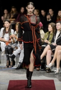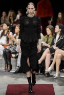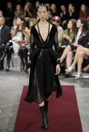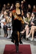 «Уличные» коллекции Рикардо Тиши успели за несколько сезонов подряд утомить публику, поэтому весенне-летнее шоу, возвращающее Тиши к истокам его сотрудничества с Givenchy, было принято с невероятным энтузиазмом. Но сейчас креативный директор французского дома вновь возвращается на улицы — и делает это совершенно блестяще, отказавшись от очевидных свитшотов с принтами и совместив стиль викторианской Англии со стилем латиноамериканских женских банд чола. Потому девушки в бархатных платьях и точеных жакетах с басками вышагивают не по паркету в окружении роскошных интерьеров, а по машинной парковке, а лица их исколоты пирсингом.