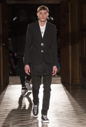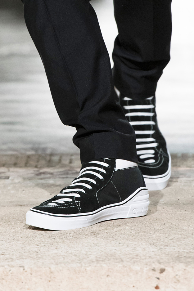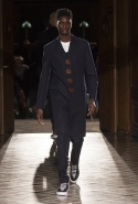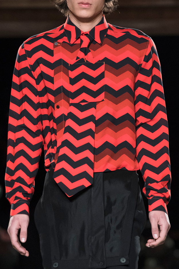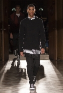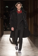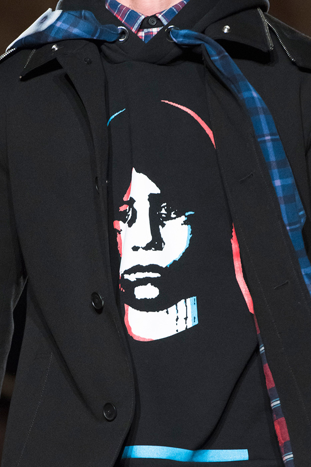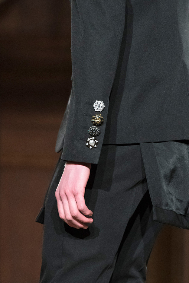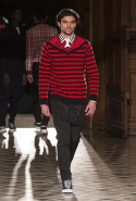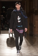 Стайлинговые приемы: большие деревянные пуговицы, подвернутые рукава у свитеров и рубашек, многослойность (футболка, рубашка, свитер и пальто в одном образе), платки вместо шнурков в капюшоне, белая футболка с классическим костюмом
