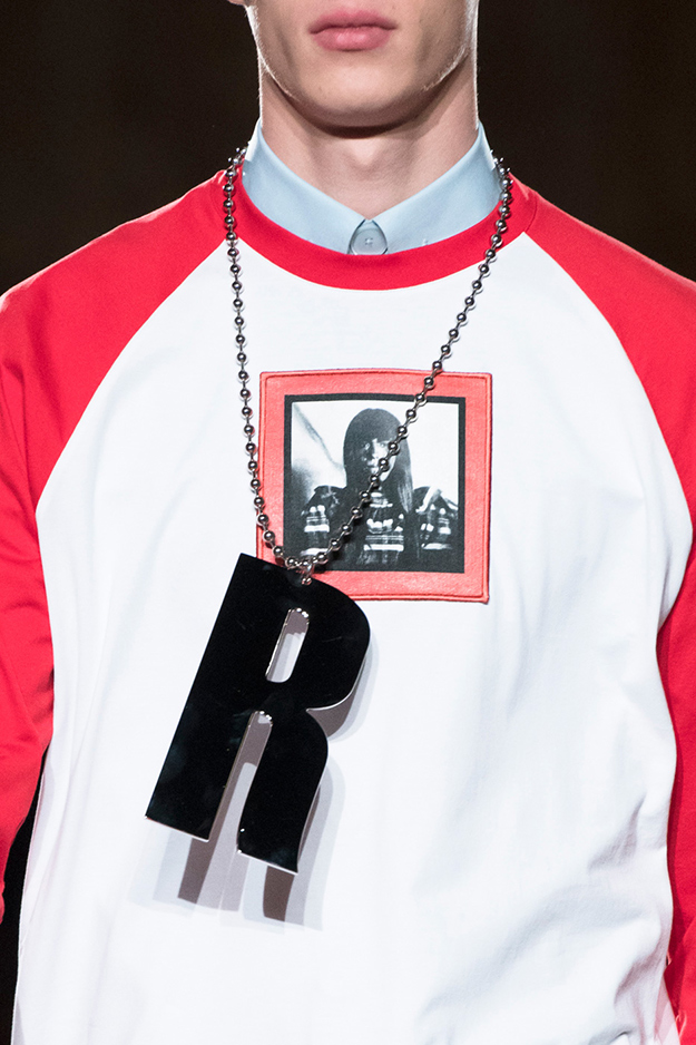 Аксессуары: серьги-кольца, большие буквы в виде шейных украшений, металлические ожерелья и серьги, цветные галстуки