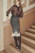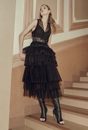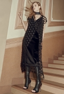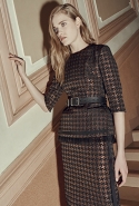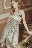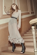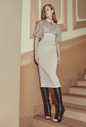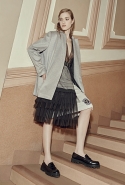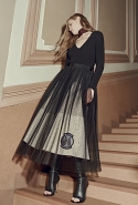 А другие вещи, более «тематические», появляются в качестве скорее акцентов, разбавляющих базу. Здесь особую ставку дизайнеры бренда, по-прежнему предпочитающие не афишировать своих имен, делают на сочетание условно «мужского» и традиционно «женского». Длинные платья сшиты из костюмного сукна, легкие и полупрозрачные наряды соседствуют с массивными куртками в стилизованных шевронах, а плотные юбки годе и объемные вязаные вещи — с кружевом и мерцанием люрексовых нитей.