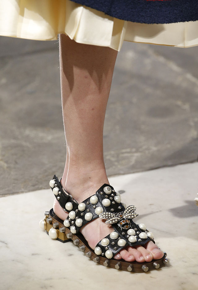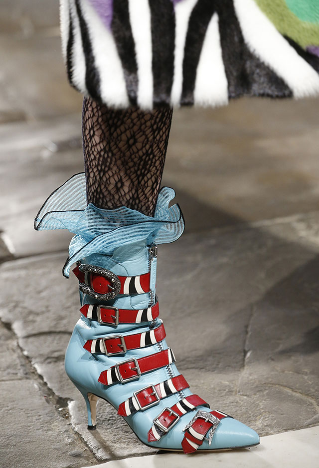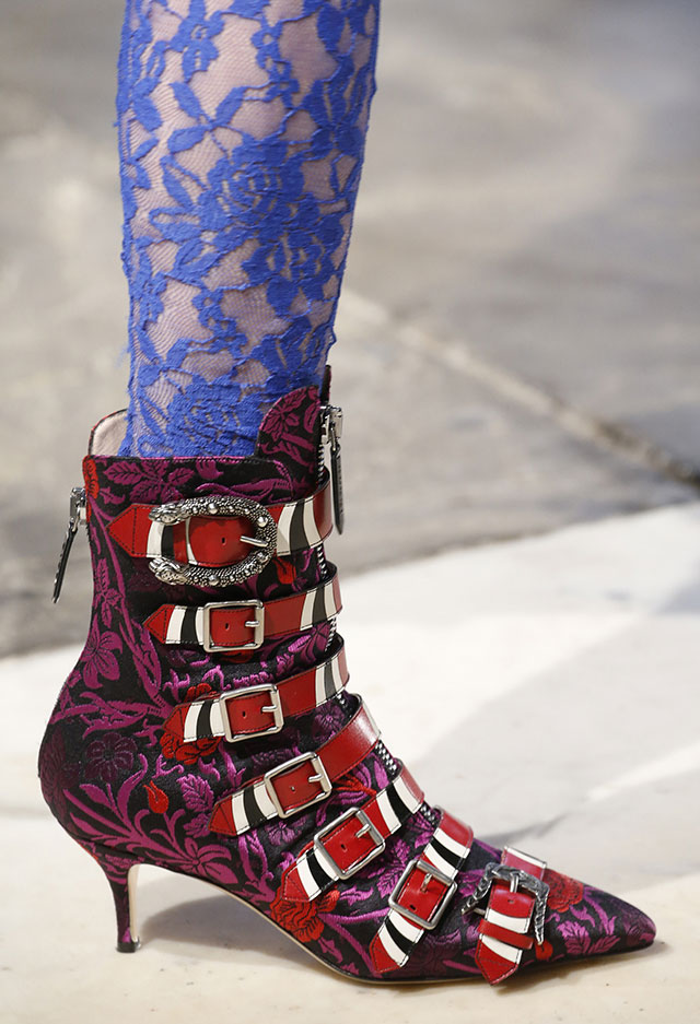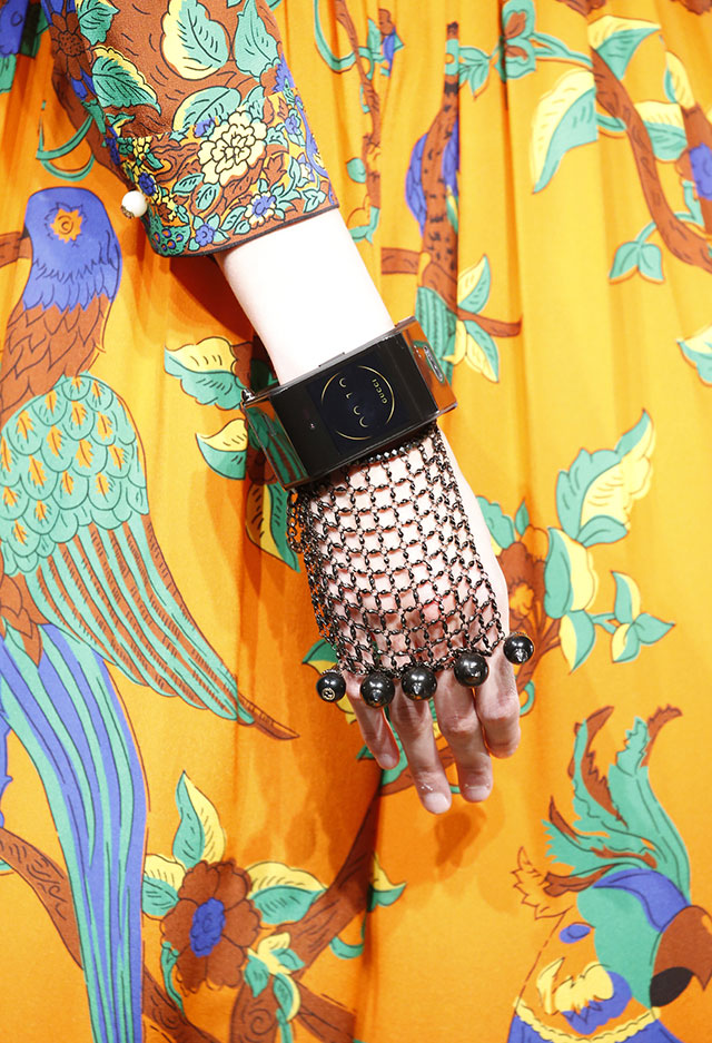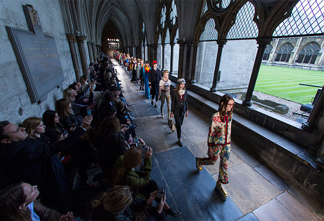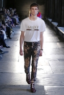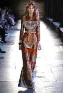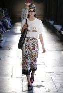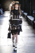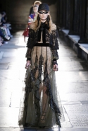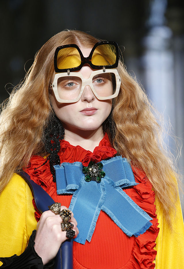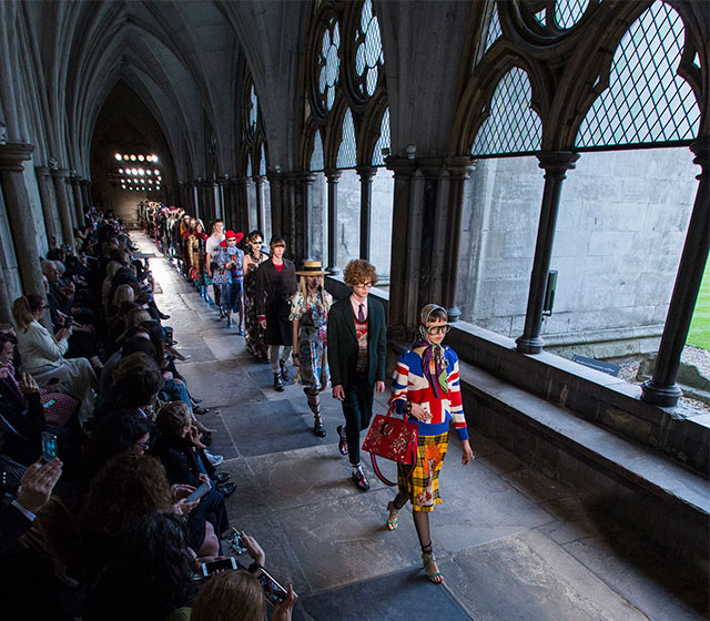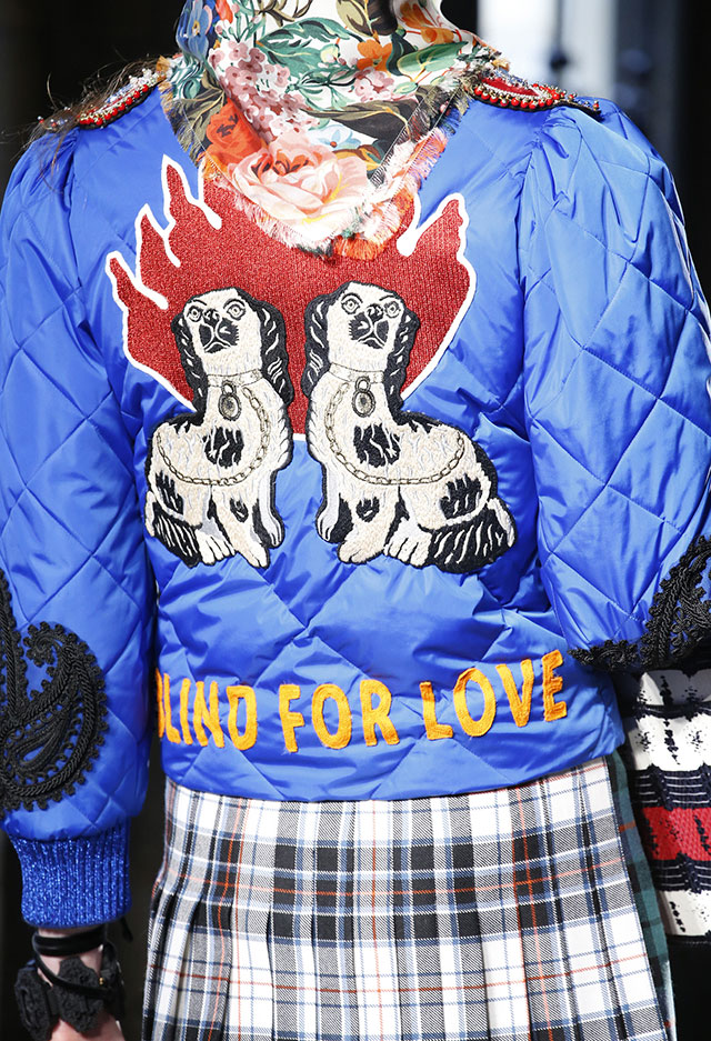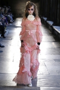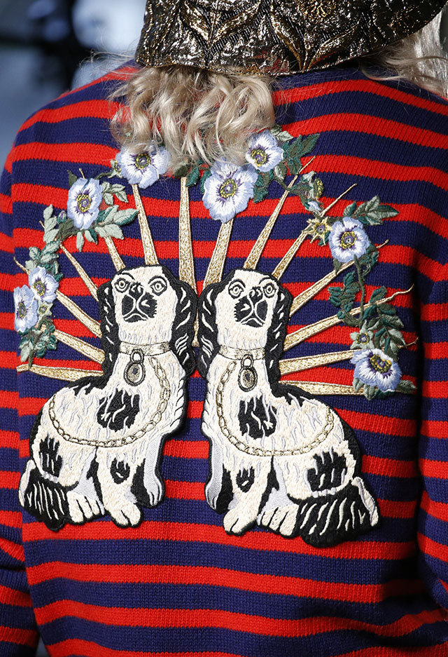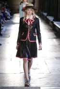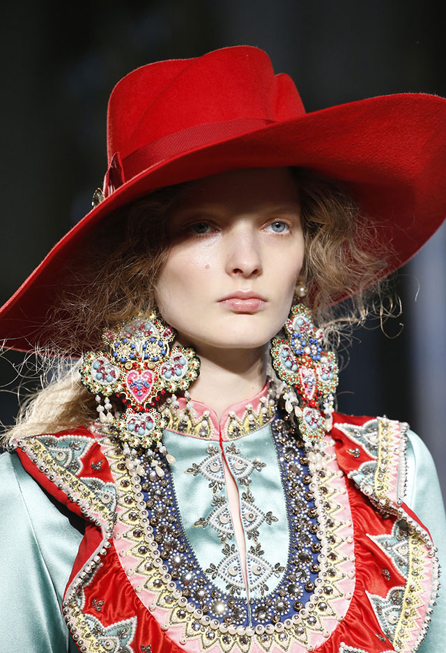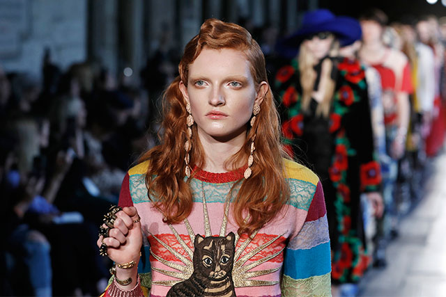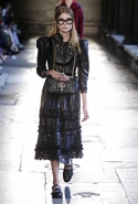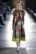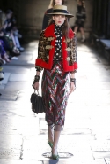 Не слишком уходя вглубь, а размахнувшись вширь, Алессандро Микеле сделал коллекцию, воплощающую тот самый британский стиль, каким его снимают для модных журналов — и взбалмошный, и чудаковатый, и местами классический, с явной тягой к mix & match, то есть смешению масс-маркета с люксом и — главное! — вещами с барахолок и винтажем. Не нашлось места только для вышеупомянутых клерков в костюмах: береты, оборки и блестящие каменья немного отвлекали бы от офисной работы.