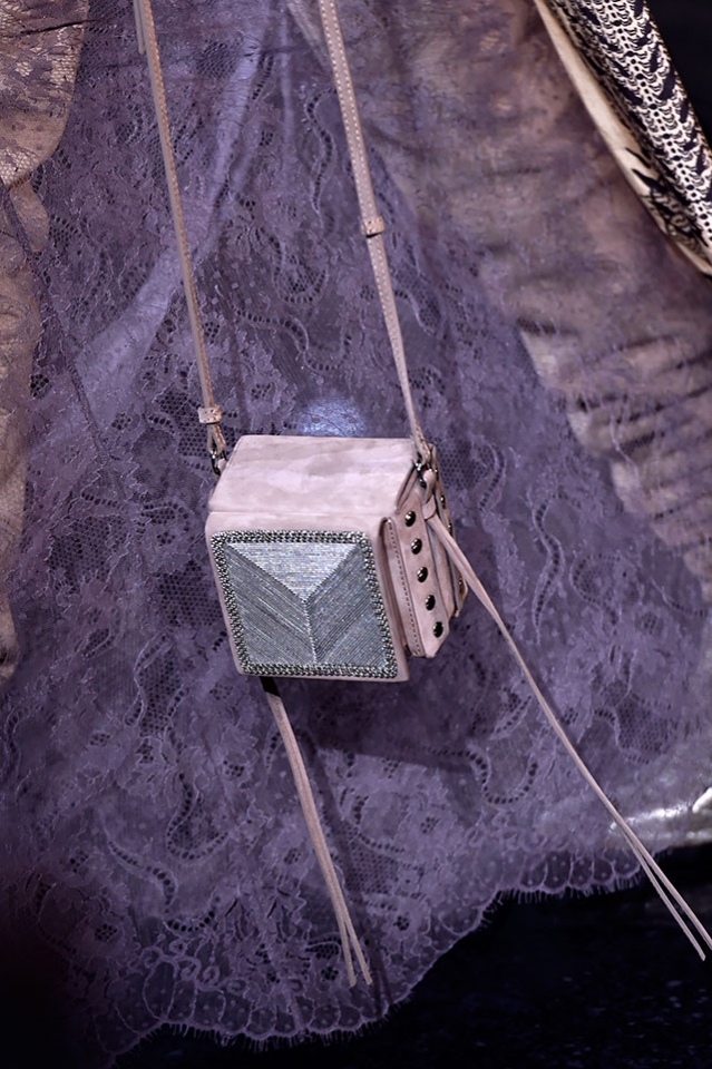 Отдельного внимания заслуживают аксессуары. Это и шляпы с разным декором, включающим и неожиданные расшитые бисером «уши», и нежные сумки-кубики (вот, кажется, та самая вещь, прибытия которой в магазины H&M мы будем ждать следующей осенью больше всего!), и бисерные кисточки, и браслеты-диски.