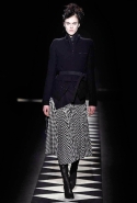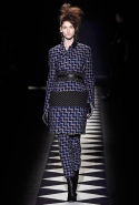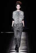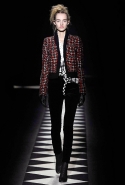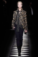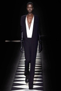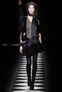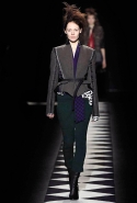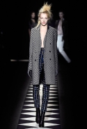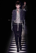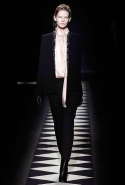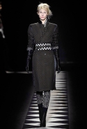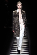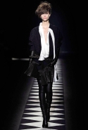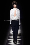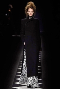 Мелкая черно-белая клетка, взятая словно с гоночных трасс, такая же черно-белая рябь, фактурный узорчатый твид, растянутый, будто в Photoshop, леопардовый принт, блестящие пайетками цветные зигзаги и просто россыпи блесток — немногие дизайнеры умеют так органично соединять столько броских мотивов в одной коллекции, как это делает из сезона в сезон команда Haider Ackermann. На этот раз, по словам самого дизайнера, главным вдохновением для него стали размышления о «трудных временах», которые случаются в жизни каждого человека. Отсюда и удивительный микс разных принтов и сочетаний, и заметная белая штопка на черном фоне — голь, как мы все знаем и как гласят народные мудрости, особенно хитра на выдумки. В руках Акерманна этот безумный микс выглядит и по-рок-н-ролльному бесшабашно, и удивительно элегантно.