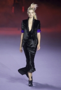 На этот раз Давид Кома одел своих героинь куда сильнее, чем обычно: голого тела стало намного меньше, а ткани — в разы больше. Практически (но, конечно, не совсем) обошлось в весеннем сезоне без мини-платьев с вырезами тут и там, а сами вырезы переместились в основном на довольно закрытые костюмы, подпоясанные пиджаки, комбинезоны и асимметричные платья амазонок, достающие почти до пола. Зато привычной кожи и сеток в кристаллах на подиуме было по-прежнему много.