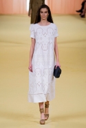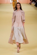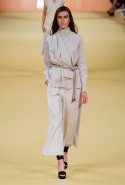 Главным источником вдохновения для последней коллекции Кристофа Лемера стала пустыня: как и Джорджо Армани, он любуется песчаными дюнами и жонглирует разными оттенками бежевого. Но если итальянский дизайнер пустыню воспринимает как место сказочное, некое безлюдное пространство между нашей реальностью и миром волшебства и миражей, то француз предельно реалистичен. Мягкие складки пальто цвета camel повторяют изгибы дюн, резной узор, выполненный в технике перфорации на закрытых белых платьях, похож на высеченные на скалах рисунки или загадочные изображения, которыми славится пустыня Наска. А платья-балахоны, исписанные разными орнаментами, и однотонные многослойные наряды напоминают одеяния кочевников.