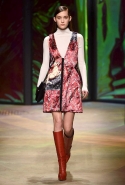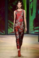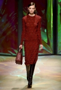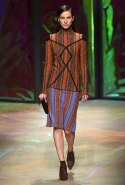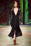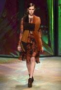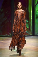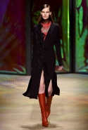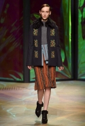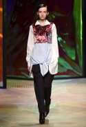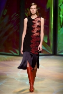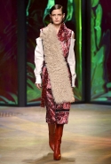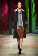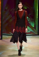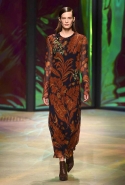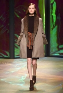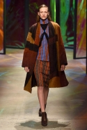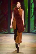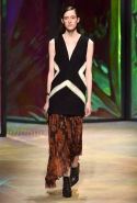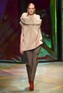 Настроение у осенней коллекции Такуна Паничгула крайне богемное: в грядущем сезоне он ратует за многослойность и советует обратить внимание на народные промыслы. Главным мотивом показа становятся полоски, которые в разных цветах и конфигурациях представлены практически в каждом образе. С ними соседствуют пальто и шарфы, созданные словно в технике пэчворк из блоков разных оттенков коричневых, горчичных и болотно-зеленых ворсистых тканей, а поверх все это украшают объемные вышивки и вязаные узоры, напоминающие макраме.