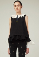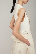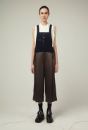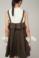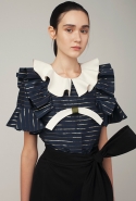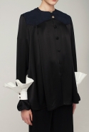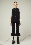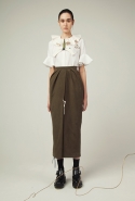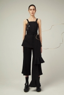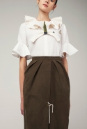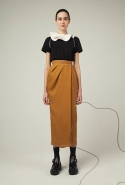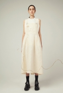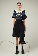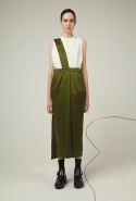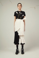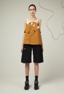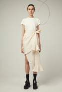 В весеннем сезоне Ким сплетает в одной коллекции сразу две древние культуры: корейскую и индийскую. К культуре Индии девушка тоже обращается не впервые: детали, напоминающие сари, уже появлялись, например, в ее первой коллекции одежды для Masterpeace. Только тогда соседствовать им довелось в первую очередь с пальто, напоминающими стилизованные кимоно, а сегодня — с воздушными вариациями чогори и чхим. Принцип введения в коллекцию индийских сари, впрочем, все равно остается тем же. В прошлый раз они добавлялись ко вполне традиционным полувечерним платьям: к корсажу крепилось полотно ткани, которое откидывалось на спину и спадало едва ли не до пола красивыми мягкими складками. На этот раз по той же схеме «хвост» крепится уже к юбке на талии: шлейф начинается лентой, как лямка комбинезона, еще спереди, а заканчивается уже за спиной, доставая до самых щиколоток.
