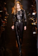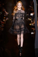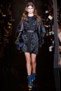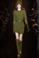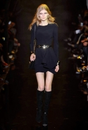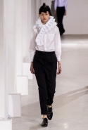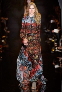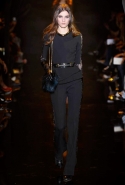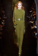 Если в своих кутюрных коллекциях Эли Сааб делает из сезона в сезон практически (или совершенно, как считают некоторые) одно и то же, то в линии готовой одежды позволяет себе куда больше экспериментов. И даже почти совсем отходит от нарядных платьев, которые всегда приводят в восторг поклонниц ливанского дизайнера. Совсем без них дело, конечно же, не обошлось, но в итоге они отлично вписались в милитари-эстетику осенне-зимней коллекции. Брючные костюмы, суровые (по меркам Elie Saab) пальто-шинели и платья из той же грубоватой шершавой ткани, хаки, темные цветы, похожие на камуфляж, — примерно так выглядит вся первая половина показа. Потом Сааб все же возвращается к любимой голливудской роскоши и шитью пайетками, но и то разнообразие, которое он показал в первой части, уже обнадеживает.