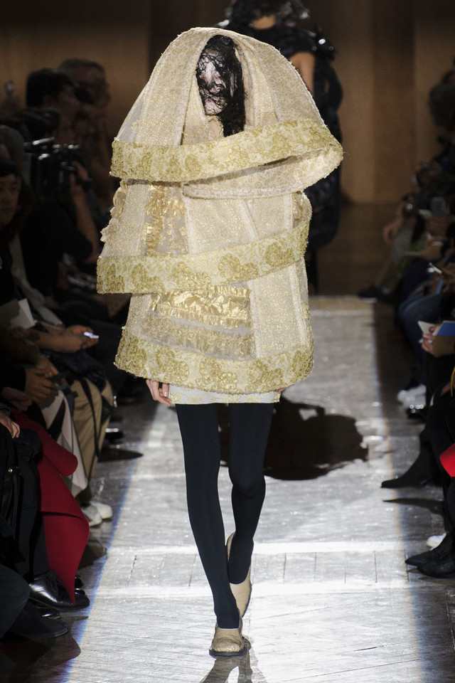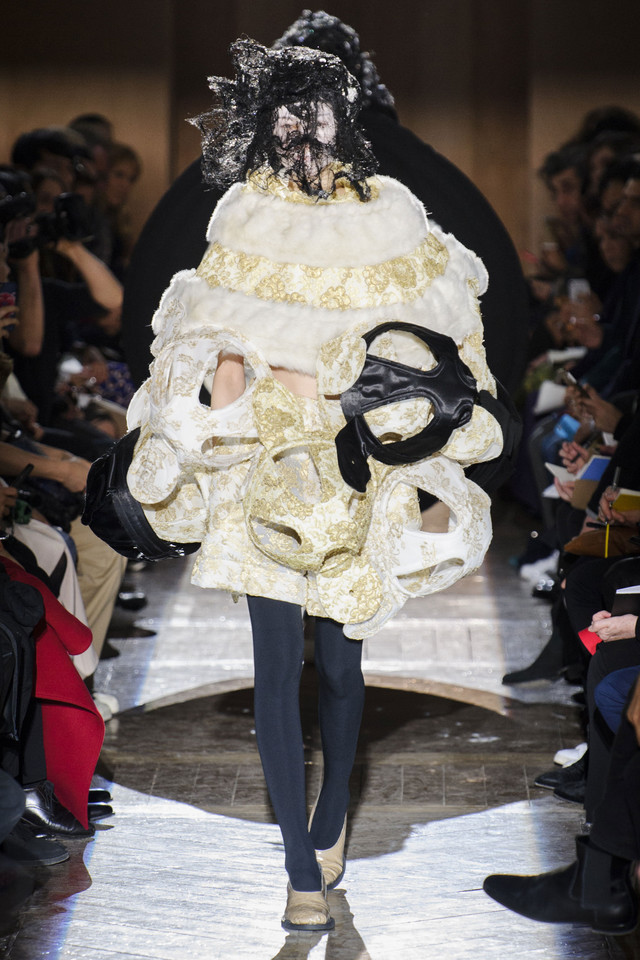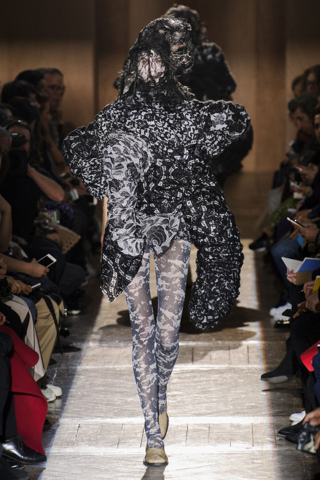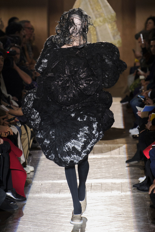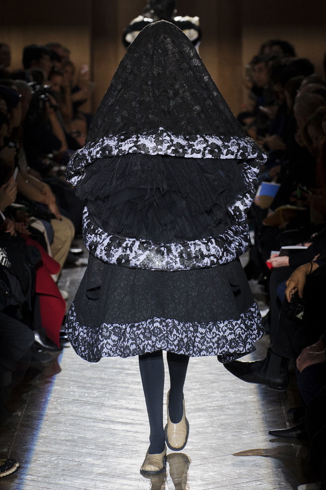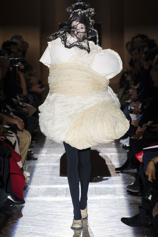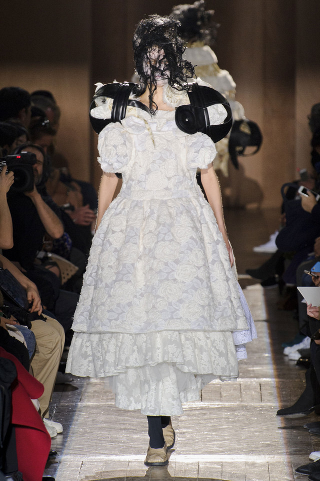 Платья на показах Comme des Garçons, как мы давно уже знаем, превращаются во что угодно — и в стайку огромных черно-серых бабочек, и в странное, но жутко симпатичное подобие хэллоуинского костюма яичницы, и в моток потрепанных бинтов. Точно так же абсолютно все, что окажется угодно душе Рей Кавакубо, может тут же превратиться в платье, будь то коллекция старых абажуров или несколько ящиков, доверху заполненных нарядными белыми бантиками. Любоваться этим можно бесконечно, рассматривая все представленное исключительно как объекты искусства.