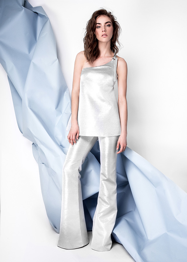 Бросив все силы на создание нескольких предметов, остальные команда Kalmanovich действительно оставила предельно простыми. Но и этих «остальных» немного: семь образов составлены из атласных брюк клеш, нескольких платьев с вырезами на плечах, пары разных топов с одним рукавом, юбок и воздушных кюлотов из органзы. Клиентки вряд ли будут разочарованы, войдем в положение и мы: всем нам когда-то нужно отдыхать, и вряд ли модные дизайнеры — исключение из этого правила. А время работы над круизными коллекциями — самый подходящий для этого момент.