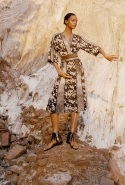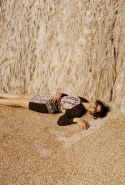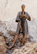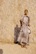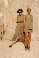В коллекциях Kenzo мы привыкли видеть графичные принты, крупные слоганы и яркие краски. Но ничего из этого в новой коллекции Кэрол Лим и Умберто Леона нет: променяв лес на пустыню, они отказались и от буйства красок, и от обилия пестрых принтов, и от лозунгов. Совсем без графики дело, конечно, не обошлось, но главный принт всей коллекции, рисунок с изображением кактусов, не слишком бросается в глаза. А многочисленные версии камуфляжной темы, которые на самом деле являются абстрактными зарисовками пустынных пейзажей и песочных фактур, выполняют, как и полагается камуфляжу, скорее маскировочную функцию. И на общем бежево-коричневом фоне выделяются мало.
