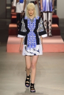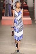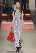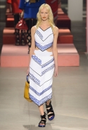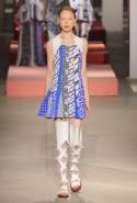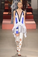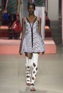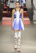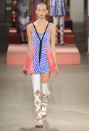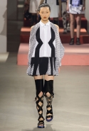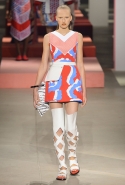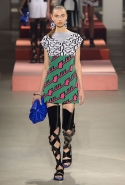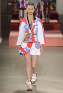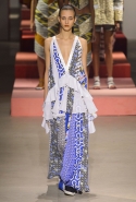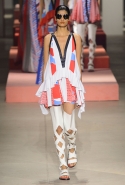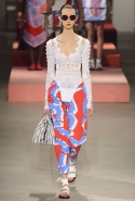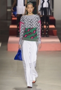 Вечные героини коллекций Kenzo при Леоне и Лим — девушки-путешественницы самых современных взглядов на жизнь. Дизайнеры не присоединяются к общей волне увлечения гендерной амбивалентностью, но активно используют в работе новейшие технологии и часто через свои вещи рассуждают о будущем. На этот раз обошлось без космических кораблей и говорящих андроидов, но получилось все равно интересно. Это, прямо скажем, довольно необычный взгляд на традиционно летнюю одежду: купальники и кружевные вязаные топы, мини-юбки и легкие платья, свободные брюки и яркие кюлоты. Главную роль в новой коллекции играют спортивные мотивы, новые интерпретации пляжной одежды и, конечно, яркие графичные принты — без них Kenzo при новых креативных директорах не представить никак.