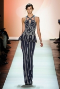 После этих слов Кудерк был оперативно уволен, а Любовь и Макс Азрия должны были сделать все, чтобы весенняя коллекция оказалась такой яркой, что мы и думать бы забыли об этих высказываниях. Получилось ли у них? Скорее да. Даже бандажные платья, почти официально признанные самым скучным и предсказуемым предметом гардероба любой дамы середины нулевых, выглядят неожиданно и красиво. Стиль 60-х и 70-х (который все никак не уйдет) дизайнерам марки удалось очень ловко сплести с отсылками к Древней Греции. Так что древнегреческие богини примеряют то тоги, богато украшенные драпировками и шитьем, то трикотажные узорчатые костюмы с туниками и брюками клеш.