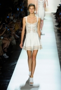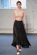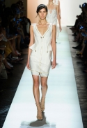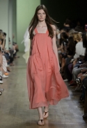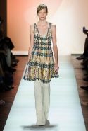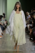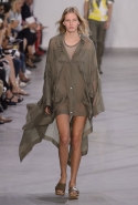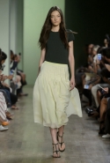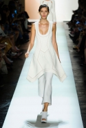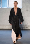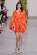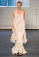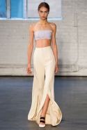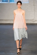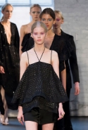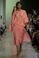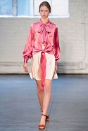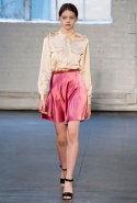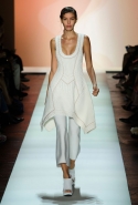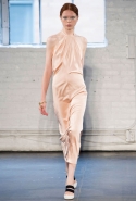 Дизайнеры Jill Stuart, очевидно, очень любят 70-е. И хотя мода на это десятилетие после пары сезонов повального увлечения этой весной просто обязана наконец сойти на нет, ради красивых и нежных вещей этой марки на их предполагаемую нетрендовость можно закрыть глаза. Потому что и шикарные брюки клеш, и мерцающие блузы с бантами, и летящие платья, явно представляющие собой реинкарнацию традиционных платьев-комбинаций, и шорты с высокой талией, и усыпанные кристаллами мини, и шелковые черные костюмы и в самом деле просто чудо как хороши. Так что если остальные дизайнеры действительно, как говорят, двинутся в сторону 80-х и более брутальных и грубых силуэтов, отказаться от такой красоты мы вряд ли сможем. Отдельных комплиментов заслуживает цветовая гамма: нежные пастельные оттенки в сочетании с полупрозрачными и соблазнительными вещами в бельевом стиле — однозначное попадание.