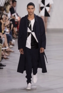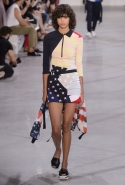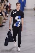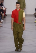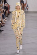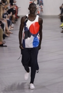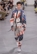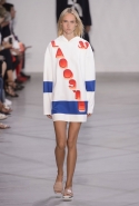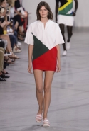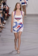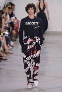Весенняя коллекция Lacoste производит двоякое впечатление: точнее, толковать увиденное хочется сразу с двух позиций. Во-первых, конечно, вспоминается тот факт, что уже совсем скоро команде Lacoste вновь предстоит одеть сборную Франции для предстоящих Олимпийских игр: в 2016 году, как мы знаем, начнутся соревнования в Рио-де-Жанейро. Отсюда и спортивные наряды, исписанные крупными графичными цифрами, и россыпи геометрических фигур самых ярких цветов, и костюмы, похожие на плакаты с олимпийской символикой. Во-вторых, кажется, Фелипе Оливейра Баптиста всерьез увлекся космосом. В комбинезонах, похожих на скафандры (особенно в серебристых), и других самых разных вещах, сшитых с использованием элементов американского флага, легко углядеть реверанс команде NASA.