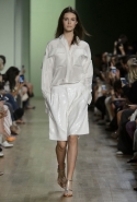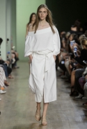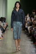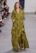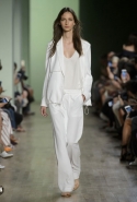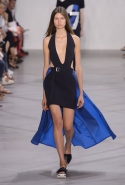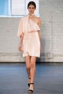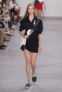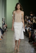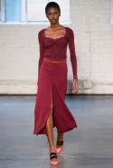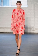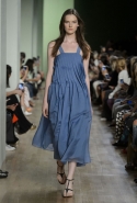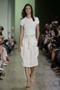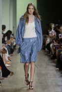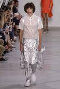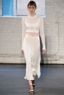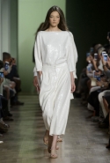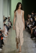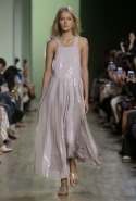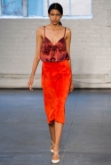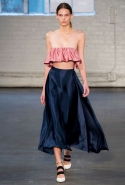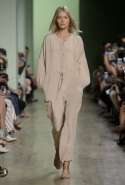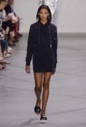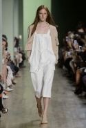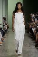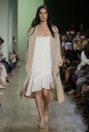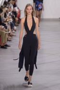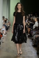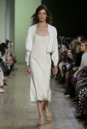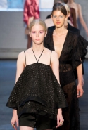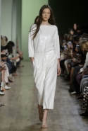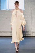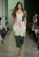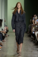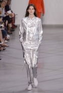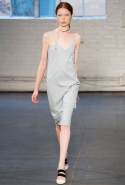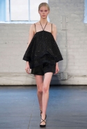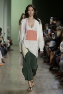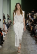 И снова пастельные тона — судя по первым дням нью-йоркской недели моды, следующей осенью Город большого яблока будет не слишком богат на яркие краски. Большая часть коллекции Tibi и вовсе выполнена всего в двух цветах — белом и пудровом, к которым далеко не сразу примешиваются и бледно-розовый, и приглушенно-лимонный, и тускло-зеленый, и нежно-коралловый. В середине их ненадолго сменяют оттенки темно-синего, а после и ужасно красивый сам по себе винный цвет, но они быстро исчезают с подиума. Зато возвращаются бежевый с белым — теперь еще и мерцающими россыпями пайеток тон в тон, похожих на блестящую пыльцу. Особенно здорово то, что дизайнеры Tibi используют это сияние для не самых очевидных вещей: не вечерних платьев, а широких скейтерских шорт на завязках, свободных просторных рубашек и легких спортивных курточек. Выглядит неожиданно, но интригующе.