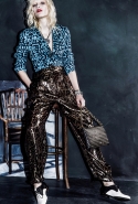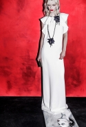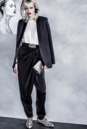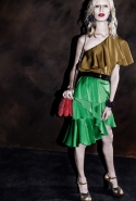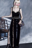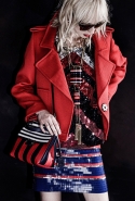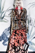 Охватывает коллекция весьма широкий временной отрезок: от 60-х до 80-х — и выделить какую-то из эпох, назвав ее главенствующей, просто невозможно. Часть образов экстравагантна и слегка безумна, другие довольно сдержанны — лаконичные комбинезоны и брючные костюмы среди всего этого буйства цвета выглядят островком спокойствия. Хотя предназначены, безусловно, для таких же шумных вечеринок и светских безумств.