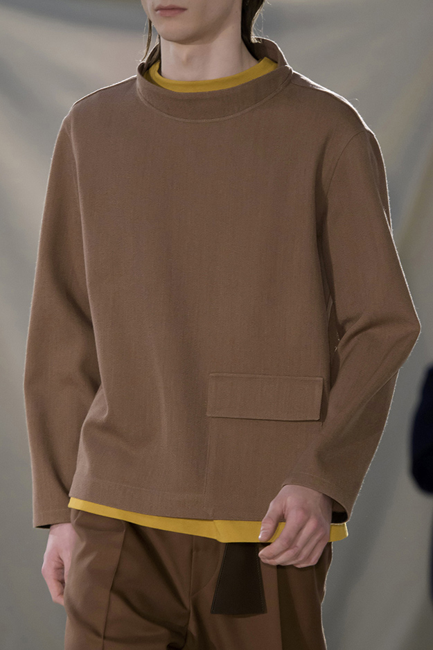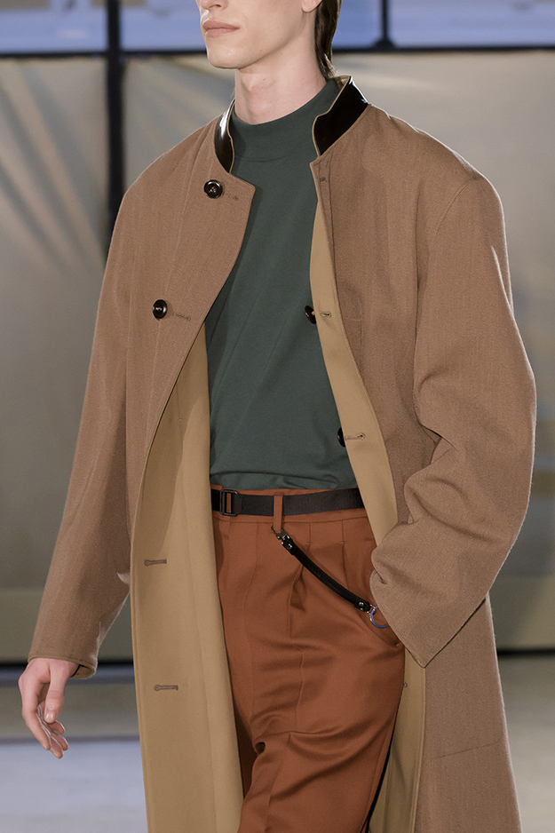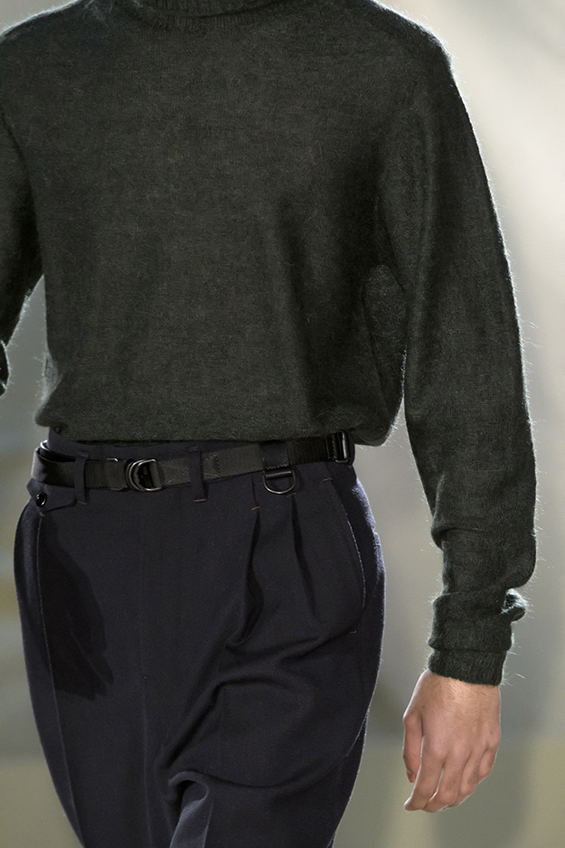 Кристоф Лемэр не спешит изобретать велосипед: базовый крой высококачественных тканей (тик, джерси, шерсть) лег в основу коллекции. Используя приглушенную палитру, дизайнер, по его собственному признанию, «хотел создать атмосферу одиночества и потери самого себя». В такой красоте любой был бы рад потеряться.