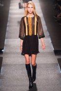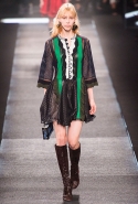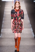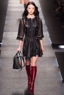 Итак, это снова 70-е — по словам самого Жескьера, десятилетие, особенно важное для модного дома, период, когда зародился стиль главных его героинь, благодаря которым марка перестала считаться скучной и буржуазной. Недаром и лицом первой коллекции нового креативного директора Louis Vuitton стала именно Шарлотта Генсбур, дочь знаменитой Джейн Биркин. На подиум вновь выходят девушки в мини-платьях, укороченных топах и костюмах с брюками на высокой талии. Главным и самым ярким, ключевым материалом становится мерцающий бархат, покрытый психоделичными замысловатыми узорами — их дизайнер, по его словам, подсмотрел в Лос-Анджелесе, на тканях родом из тех самых 70-х годов.