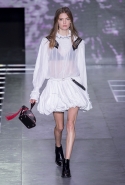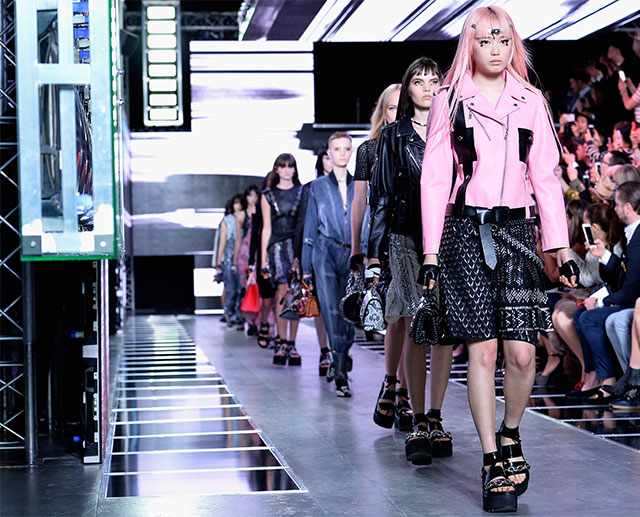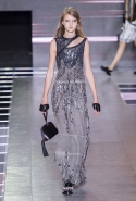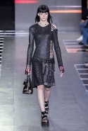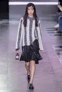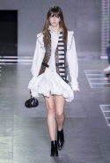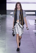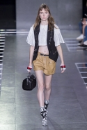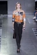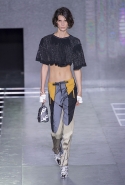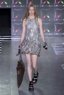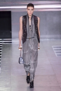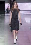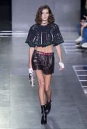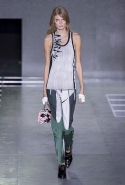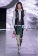 Николя Жескьер продолжает развивать тему футуризма, начатую чуть ранее с участием той же розововолосой модели. На этот раз Фернанда Ли вновь открывает показ Louis Vuitton, представляя коллекцию такую же футуристическую, но уже постапокалиптическую. И его героини, даже простые блондинки и брюнетки, а не обладательницы такого же запоминающегося цвета волос, как Ли, превращаются в героинь аниме. Некоторым достаются даже обручи на голову с сияющими во лбу камнями — неотъемлемая часть образа любой мультипликационной воительницы. Хотя сходства у этих украшений гораздо больше не с магическими артефактами, а с достижениями самых передовых технологий: и обручи, и чокеры выглядят как что-то среднее между шпионским приспособлением со встроенным детонатором и новинкой из магазина Apple, доступной в наши дни любому человеку с улицы.